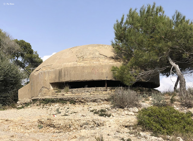 Uns metres més endavant i un cop creuat el barranc de la Martinenca, trobem també vora mar les restes de la potent Bateria de Costa, on s'havien d'emplaçar dos potents canons Krupp, un polvorí i diferents dependàncies de suport. El niu de metralladores juntament a un altre situat al sud, defensaven l'emplaçament. Em sorprén que els diferents temporals han obert l'entrada als túnels, fins fa poc, segellada…